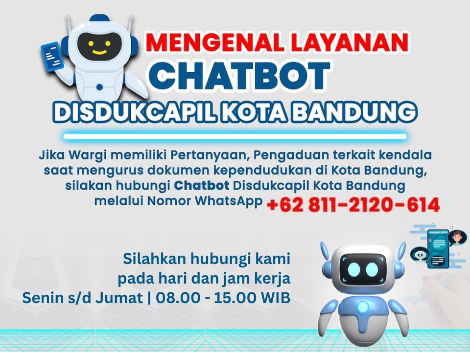 Jika Wargi memiliki pertanyaan, pengaduan terkait kendala saat mengurus dokumen kependudukan di Kota maluku tengah, silakan hubungi Chatbot Disdukcapil Kota maluku tengah melalui Nomor Whatsapp +62 811-2120-614 Silahkan Hubungi Kami selama hari dan Jam kerja (Senin-Jumat 08.00 - 15.00 WIB)